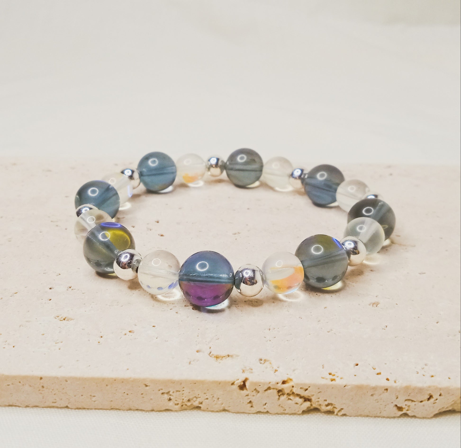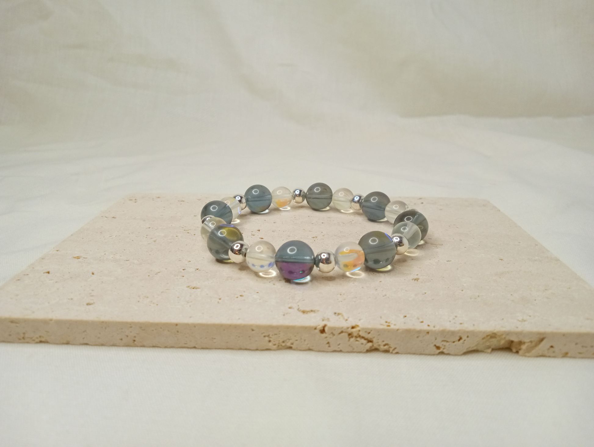 Our Gray Reflection Bracelet is the epitome of urban elegance. The soft gray and clear glass beads catch the light in the most alluring way, making this stretch bracelet a must-have for any fashion-forward fly girl. Whether you're stacking it with your favorites or wearing it solo, this piece is designed to reflect your inner glow.